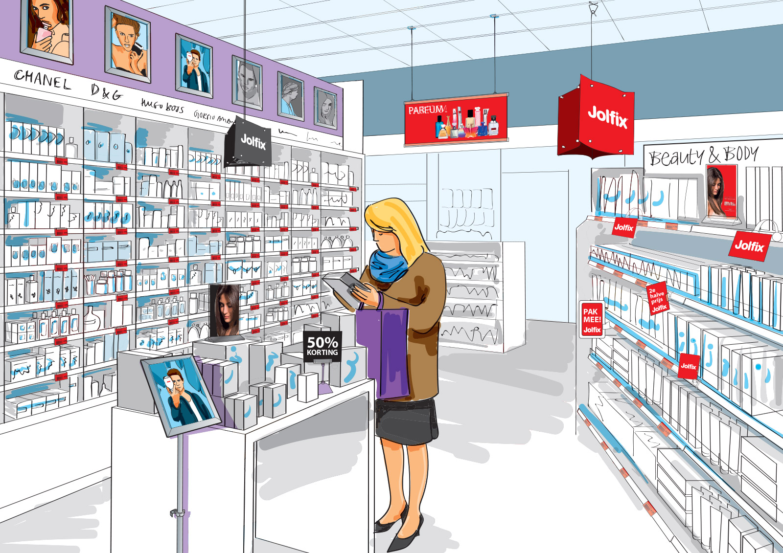 De gehele winkel is belangrijk voor de beleving van de shopper. Van schapstoppers, via plafondbevestigingen, naar presentatie en informatie producten probeer je de aandacht van de shopper te vangen en deze te informeren en te verleiden tot koop van het product. Opvallen is verkopen!